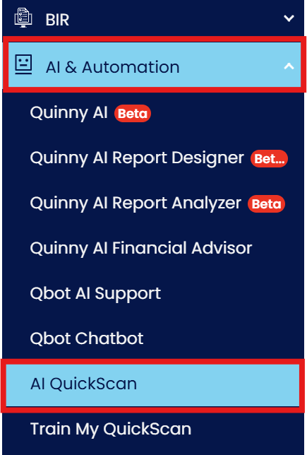 1. Under Navigation Panel, go to AI Module > QuickScan