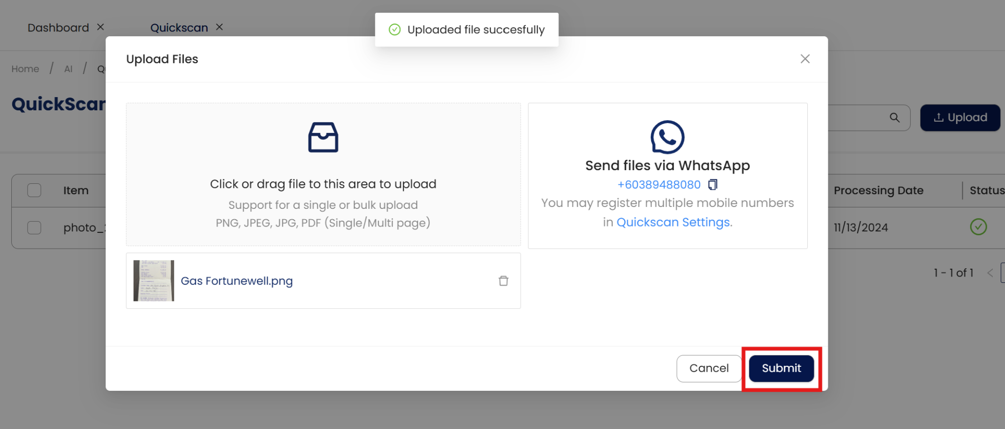 QuickScan is the AI Module of QCA that uses OCR (Optical Character Recognition) technology to detect characters on the uploaded document.