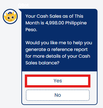 4. AI QBot will provide the Total Sales. Click ‘Yes’ to generate a reference Report.