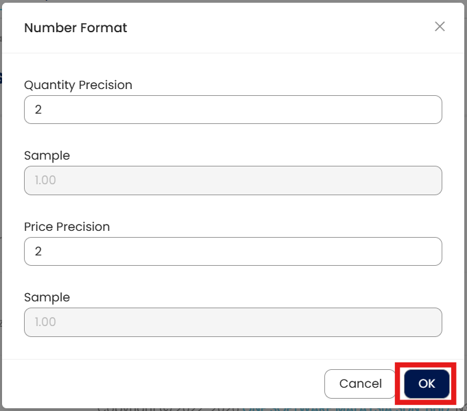 3. Set the No. of Quantity and Price precision. Once done, click ‘OK’