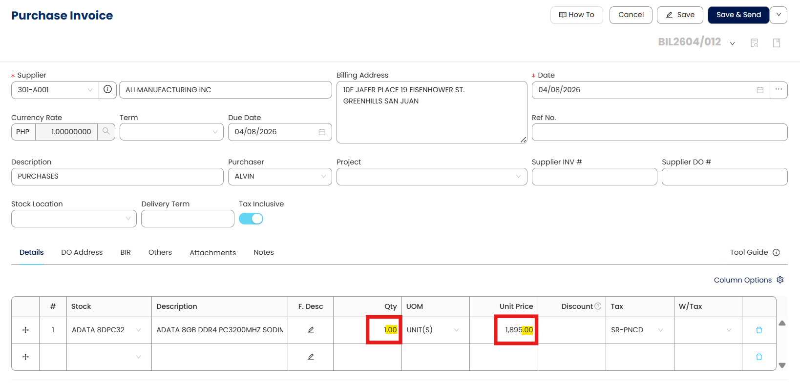 System allows the users to change the decimal points for Quantity (Qty) and Unit Price in your Purchases Transaction form. Adjusting these settings can help maintain accuracy in your financial transactions, ensuring that your purchase records reflect precise amounts necessary for your business operations.