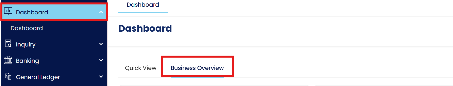 1. Go to Dashboard > Business Overview.