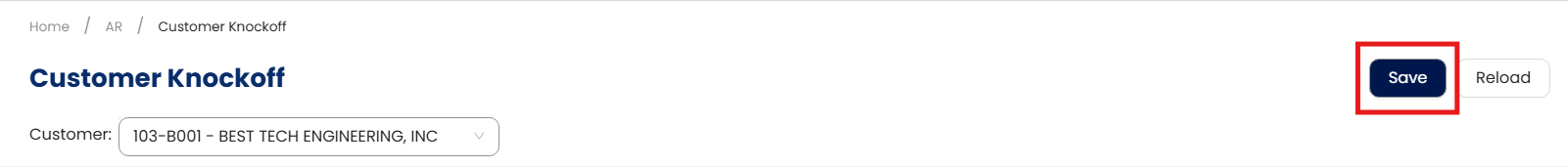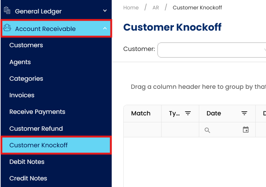 From the Navigation Pane, go to Account Receivable > Customer Knockoff