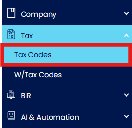 Step 1: Go to Tax Codes: