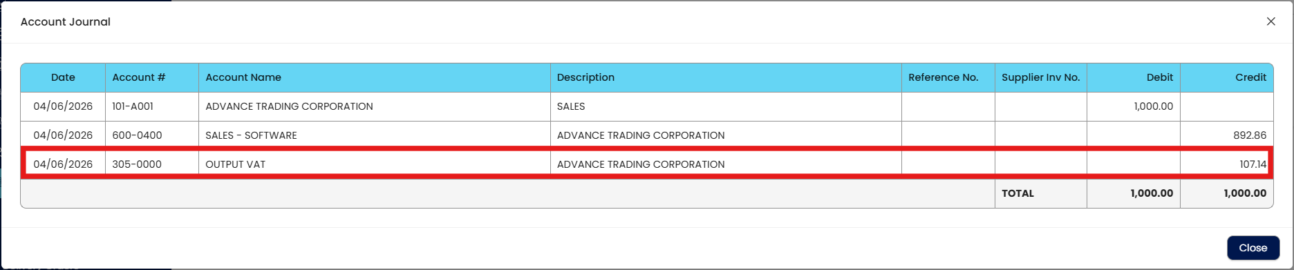 For instance, when you create a Sales Invoice using the SR-SP (Standard Rated – Sales) VAT code, the system posts the VAT to the appropriate Output VAT GL account. This ensures your Output VAT figures are correct and your tax reports are ready for timely, compliant BIR submission
