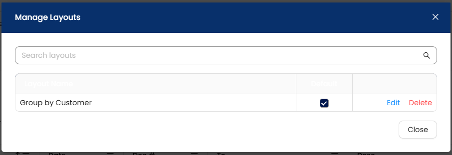 Here, you can Edit the layout name, Delete unwanted layouts, or set a different default layout.