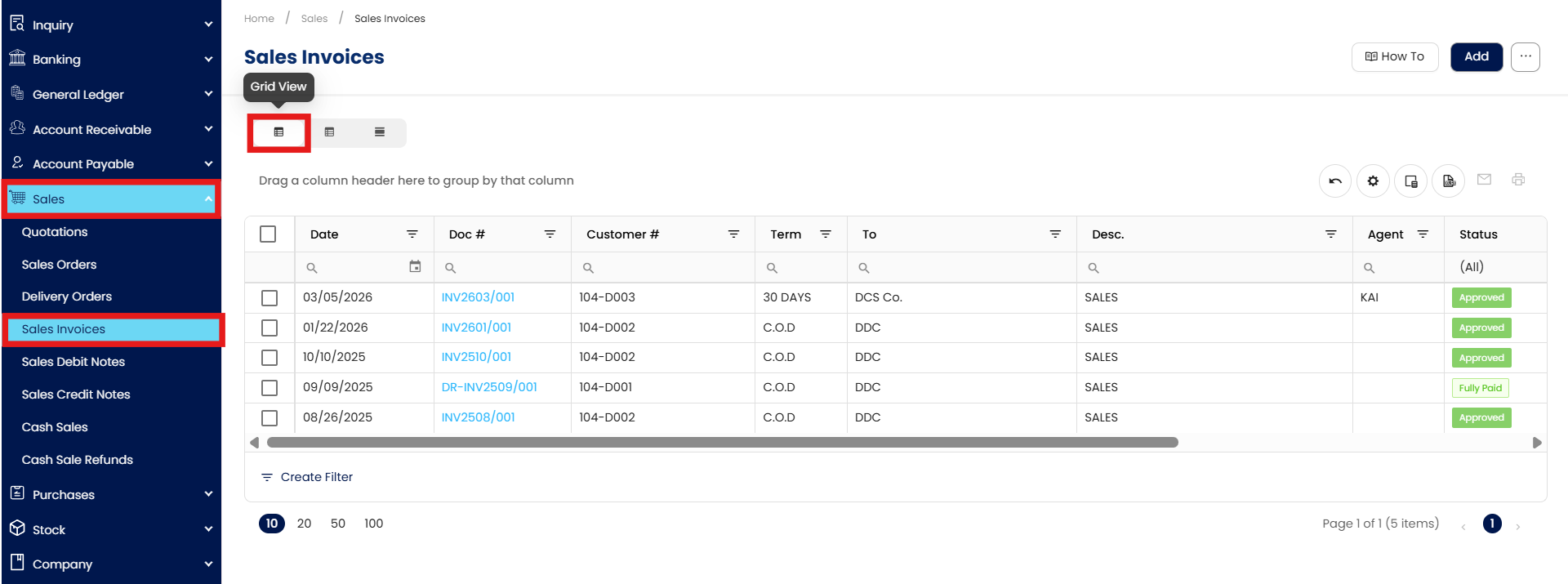 Go to Sales Invoice > List View.