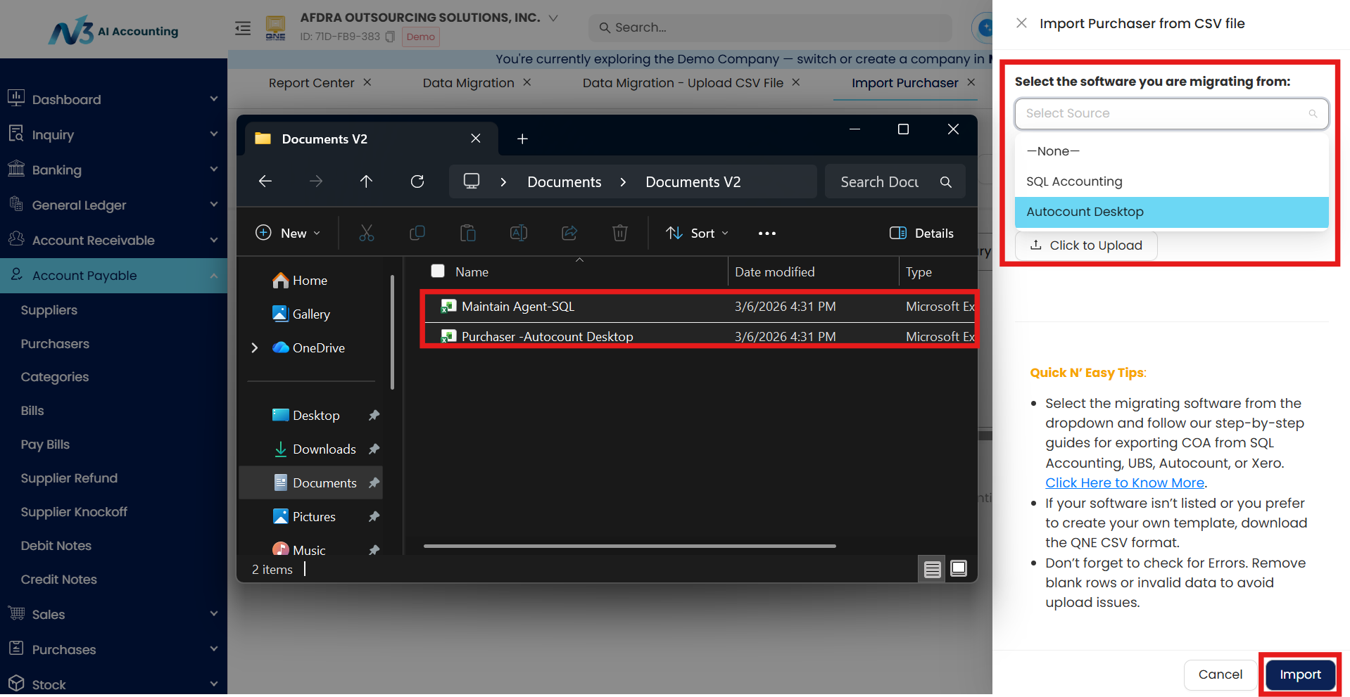N3 AI Accounting offers a seamless solution for users transitioning from other accounting software. One of the standout features is the ability to directly import your extracted Purchaser data without needing a pre-filled N3 template, ensuring a smooth and efficient migration process.