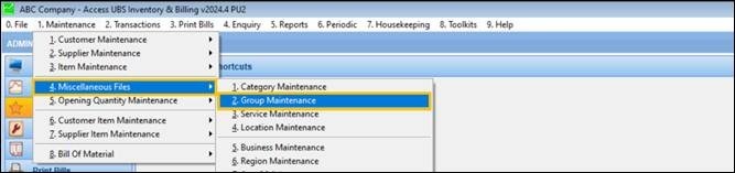 Upon logging in to UBS, on the ribbon tab, click 1. Maintenance > 4. Miscellaneous Files > 1. Group Maintenance