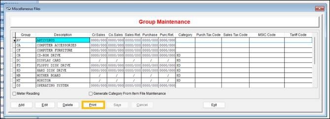 On the Category Maintenance pop-up window, check if the details are correct before extracting them, and click Print.