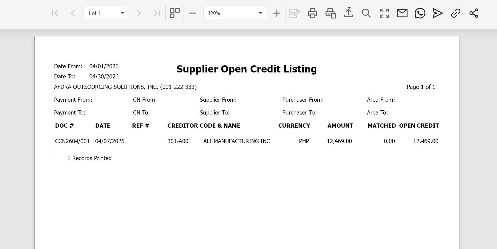 Simplify Reconciliation: Quickly confirm outstanding supplier credits during month-end or year-end closing.